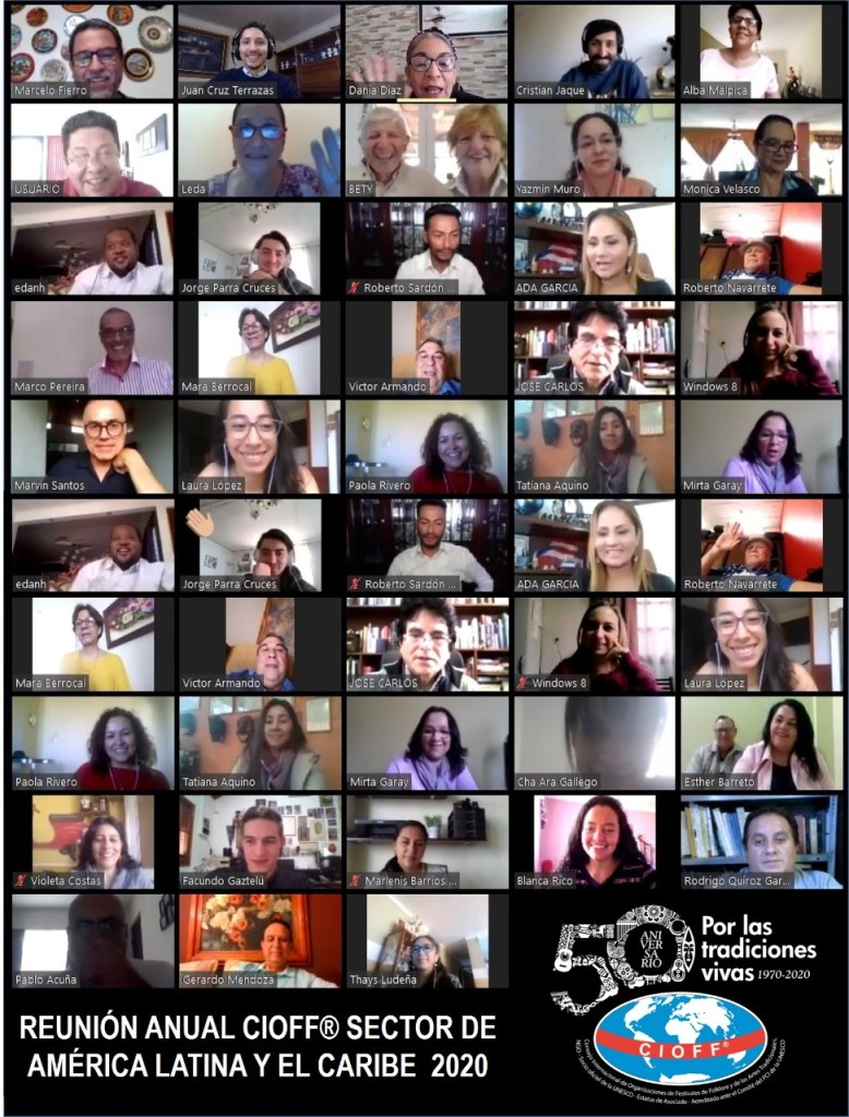 Participaron delegados y miembros de las Secciones Nacionales de Bolivia, Brasil, Chile, Colombia, Costa Rica, Cuba, Ecuador, El Salvador, México, Panamá, Paraguay, Perú, Puerto Rico y Argentina; junto con el Prof. Hugo Ifran -Miembro de Honor de CIOFF®-, el Mtro. Alejandro Camacho -Vicepresidente para Asuntos Culturales de CIOFF®-, la Prof. Beatriz Sangoy -ex Presidenta de la Comisión de Cultura y del Sector- y Thaty Aquino Garay -Representante Juvenil del Sector-. La reunión estuvo coordinada por Marcelo Fierro Yantorno y Mirta Garay, Representante y Secretaria del Sector respectivamente, asimismo contó con la visita y el saludo de Philippe Beaussant, Presidente de CIOFF® Mundial.