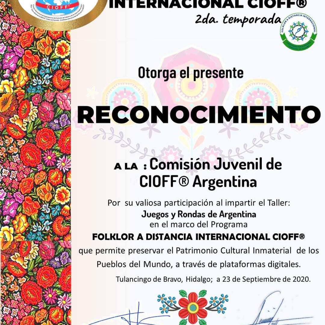 El pasado 23 de septiembre la Comisión de Jóvenes estuvo al frente del taller para niñas y niños de toda América Latina y el Caribe, actividad que viene llevándose a cabo en el marco de Folklor a Distancia Internacional CIOFF®.